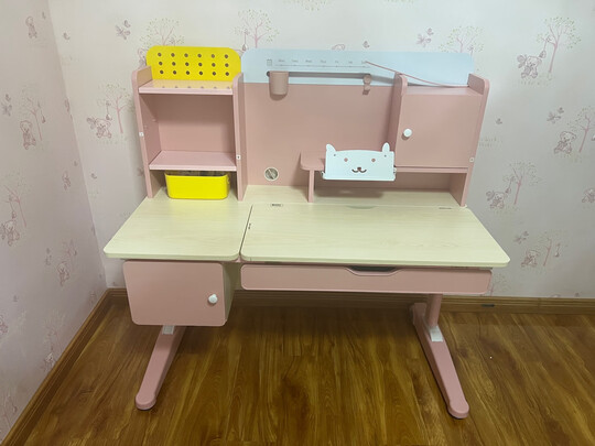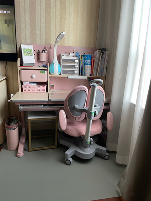 首先夸下售中5哦~耐心服务好,不厌其烦的回答问题,表扬表扬!;我们家这个地方只有112cm,全网只有他家有这个尺寸,而且没有味道也。椅子很稳,大人坐都没有问题的,桌面任何角度随意停。小抽屉个桌面下大抽屉特别好,能放不少东西。挂书包的地方蛮好,只是我这个地方太小用不到,还是很人性化的,性价比也还可以的。