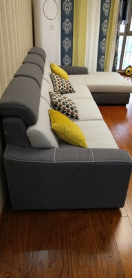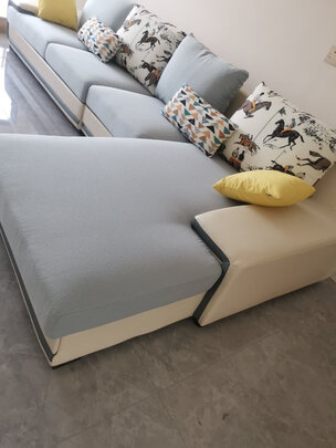 这次搬新家,买的都是全友买了很多,这个沙发布料看起好高科技,摸起手感也很好,更喜欢沙发颜色的搭配,清爽时尚,坐起也是相当的舒服,沙发下面还设计了拉扣,所有沙发可以连在一起,不会跑来跑去,设计的好