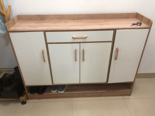 收到第一感觉就是非常重,没想到买到那么实在的鞋柜。质量很好。组装也方便,有图片按顺序来就好了,也有视频帮教。使用也方便,比之前放鞋子的更实用,上面可以放东西,下面一层放经常穿的拖鞋。里面还有透气空设计。确实很棒。点赞?