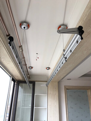 外形外观:很漂亮,做工很好;安装服务:安装师傅很专业,阳台吊顶了也顺利安装;其他特色:把手特别方便,控制切换两根衣架的高矮非常轻松