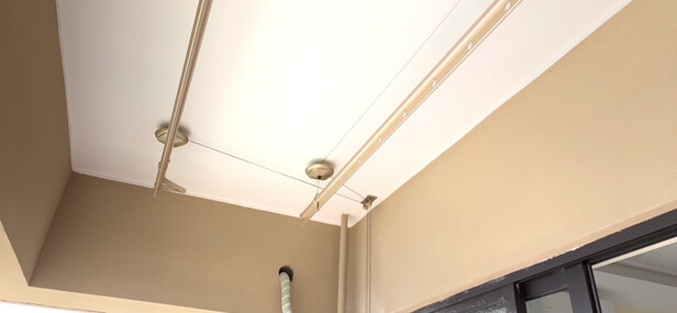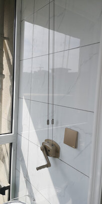 晾衣架材质不错,是正品,颜色非常漂亮,安装师傅给装好了,试了下没问题,师傅说钢丝绳承重没问题,晒被杆不用的时候可以折上去,不影响上面的晒衣服杆,很满意。