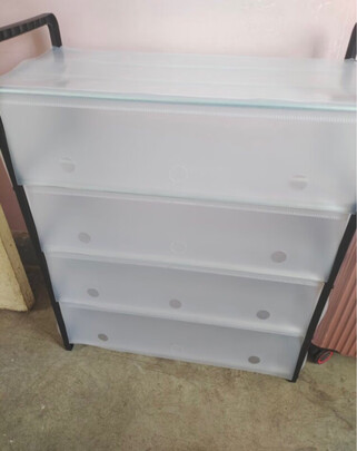 东西收到了,拼装简单,还能调节高度。空间也大,宽度足够,我44码的鞋子也能放下。小一点的鞋子放三双没问题。
