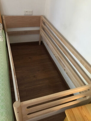 床收到了,师傅很快就过来安装了,用料比较扎实,是全实木的,造型也简约大方,总体还是比较满意,就是目前气味还比较大,应该是杉木板本身的气味,买来要先散散味道。