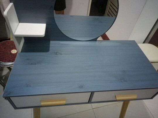 超级漂亮的梳妆台,而且很结实,没有异味,跟商家描述一样,没有色差。关键板材很结实,简单易安装。
