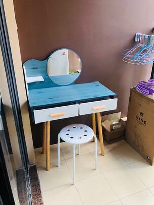 梳妆台简约时尚,放在房间里面和我的床铺也很搭配,尺寸合适。