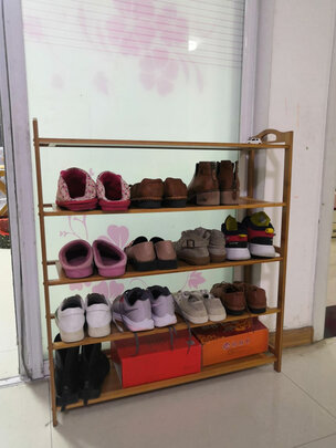 外观样式:很滿意,很漂亮。;商品质量:无味,好。;适合场景:厕所角落。;承重能力:承重几双鞋没问题;配送服务:快。;产品材质:很好,结实。