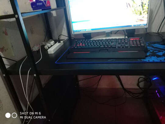 够大,送货也很快,就是这么重的东西也不送到家,自己下楼扛上来的。怼着墙也没有晃动,好拼装。桌子下边放上收纳箱真的很省地方,还不错!