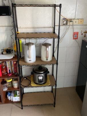 非常好的一款置物架!;架子组装十分简单,几分钟就搞定了。;层与层之间的间距可调节空间很大。;用料做工细节都不错,焊点牢靠,;承载力强,可以放很多东西。