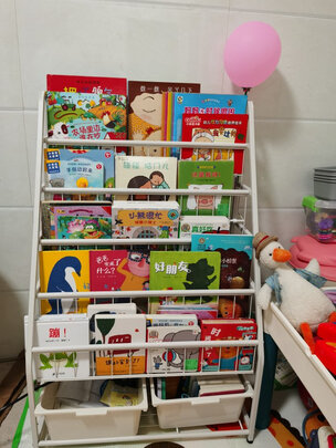 能放很多书。孩子拿着也特方便。一目了然的。收纳盒里放点小玩具什么的。放在墙边也不占地方。买它没错
