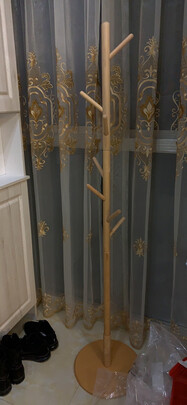 非常好的一款衣帽架,有了它,衣服有地方放了,也不乱糟糟的了。材质是木质的,颜色很正,高端大气上档次,买它买它买它,摆在屋里也很好看。