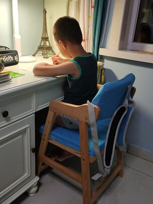 坐上去后就出不来了,还得有个大人去把他拖出来才行,放的远点孩子写作业就不舒服了,后面的带用不上了,坐着坐着就往前走了,不太好!