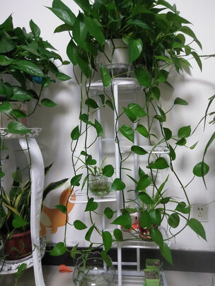 正好有五盆绿萝,最上面的老长了。不太会养花,但是散落一地超级难看,不如找个东西给他和在一起,看着顺眼舒坦,至少能垂下来,有点意境。挺好用,实用方便,简单就好