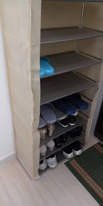 外观样式:外观简洁大气,使用方便;商品质量:商品质量很好,还加了一层布,隔离泥土挺不错;配送服务:快递速度快,当天下单当天就可以收到,这个超级好;产品材质:不锈钢材质管,很耐用,两边是软塑料的,放鞋子而已,用个几年没问题;承重能力:能放十几双鞋子,很好;适合场景:鞋架我用来放门口的