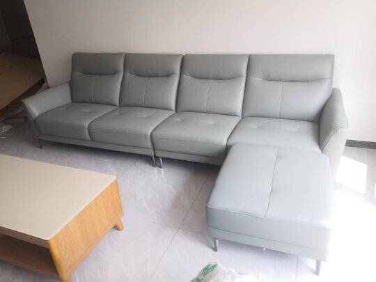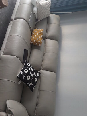 沙发特别好看,摸起来质地很棒,一点味道都没有。坐起来软软的特别舒服。是正品真皮。价格也不贵,真不错。