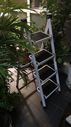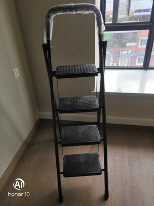 家里装修需要梯子 看到这款梯子还不错 黑色简约大气很漂亮 加厚的材质摸着也很厚实牢固 爬上去也不太摇晃 还是挺稳的 希望能耐用些