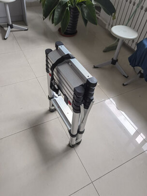 能折叠。可以节省存放空间,分量挺足,挺扎实。爬上去也不错,挺稳的。 只是每一节抽出来的时候都有卡扣,需要确认卡扣卡扣卡住了才才能上,否则很容易出问题,这个要小心。总体评价中规中矩吧!