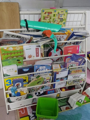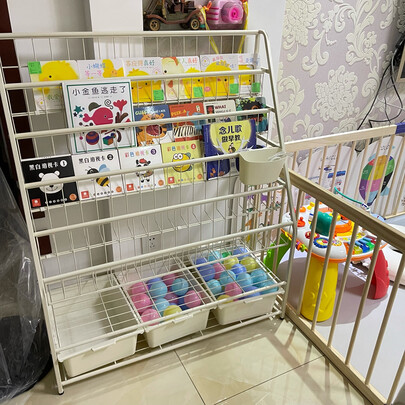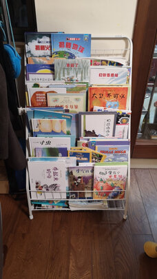 书架不错的,非常实用。关键是铁艺的材质,用着稳当不晃,也不用担心砸到宝宝。容量也不错,能放很多绘本,在~看了很多测评,对比好久才下单。