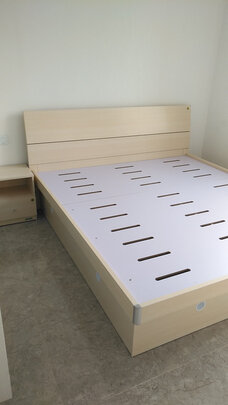 材料安装好了。非常的大气上档次,躺在上面很舒服,不会发出异响,也没什么异味。非常高端大气上档次的一款床,非常满意,卖家服务也非常的好。