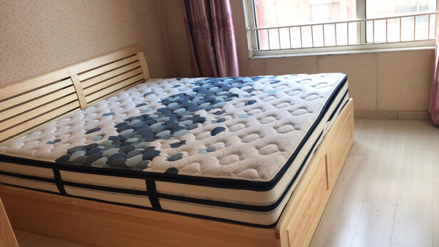 床垫非常棒,没有味道,坐上去软硬合适,躺着很舒服,估计铺上褥子会更舒服。,和新床很配。