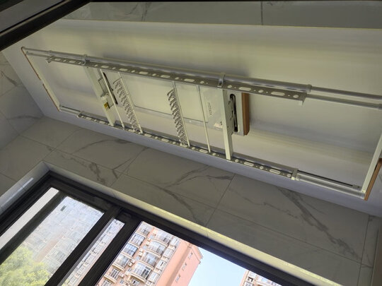 送货很快,安装也很快和及时。但晒衣架装上去看感觉一般般,不是很好看,颜色搭配上不是很好。可惜装上了