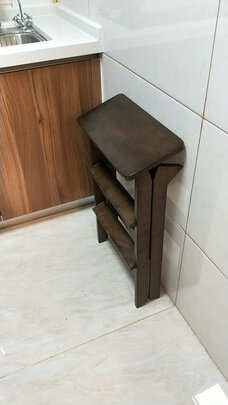 配有工具,安装挺方便的。凳子放在厨房,高低合适,可坐可当梯子,实用,踩上去很稳当。