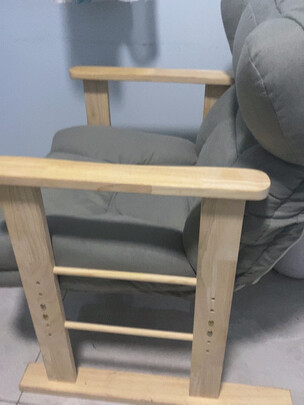 靠椅很好,弯折角度有好几档,而且很稳固,到某一个档位卡住之后就没有任何虚位的晃动。外套也可以拆洗,里面是普通的海绵。有一点需要注意,就是铰合处,因为弯曲的时候齿轮会凸出,所以弯曲处的海绵已经被撕裂了,不过不影响坐的感受,但是千万不要把椅子甩到人身上!因为很有可能被铰链击中,铰链是金属材质的!如图中黑色褶皱处,就是铰链铰合的地方。