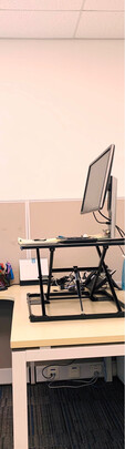 整体比较稳固,全部放下的话,比桌面高出5厘米。抬起的话固定性非常棒,不会往下塌。办公室坐着时间太长,颈椎会很不舒服,而且腿部血液循环也不好。每天站着办公几个小时希望减轻腿部负担,使思维更加灵活,身体更舒展自由!