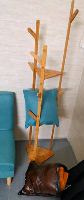 实木很实在,每个安装节点都有数字提示,非常人性化,装起来很容易上手。颜色也很OK,跟家里的装修风格完全一致。有八个支架,可以挂不少衣物。