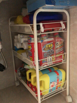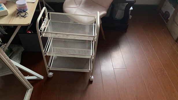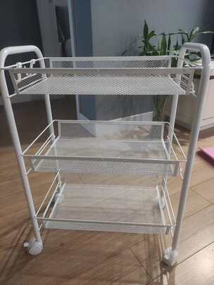 外观样式:颜值非常在线,小清新;;商品质量:承重能力强,储物能力杠杠的;;产品材质:轮子灵活方便,即不占空间,又方便打扫卫生 真的很棒