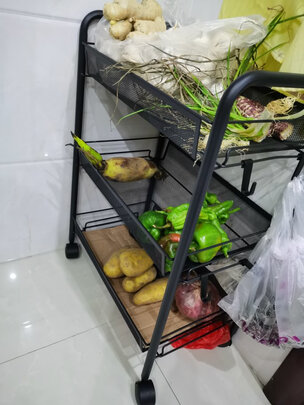 挺好的,方便移动,又整洁,打扫起来也方便,移动一下就好了,底部有轮子很轻便,买的菜放上面看起来不会那么乱了,自己选的都是网层的,所以在最下面铺了一层硬纸板,防止灰掉在地上,买的时候应该把最下层换成不是网面的,整体很好,不错???????????