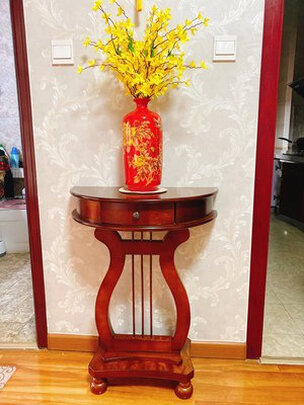 宝贝实物与介绍照片一样,包装结实、玄关桌做工好、非常漂亮、性价比高、值得购买。物流速度也快,非常满意。