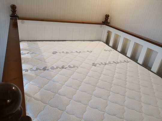 收到物流送来的床垫,物流帮忙打开包装,铺放在床上,试了试床垫软硬合适,看上去高端大气,总的很满意,全五星评价,谢谢店家