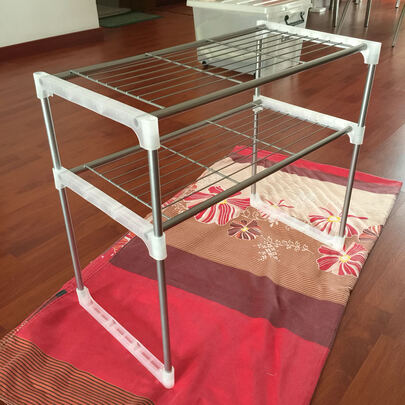 架子收到了很容易组装,材质很好,手感光滑,可随意调整高度和长度,稳固性非常好!放在橱柜灶台上特方便使用。快递速度很快,点赞。