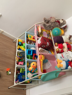 这个架子不是特别硬实的那种,但是用来放小孩的玩具也足够了,自从买了这个架子,家里整洁了许多,美中不足的是图二,也就是架子的顶部,镂空太大了,不好放书,除非是很大本的书,不然会掉下来砸到小孩