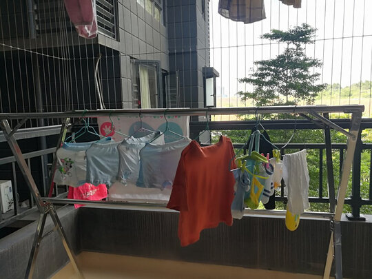 晾衣架收到了。不锈钢材质很好。结实耐用,晾晒方便。很牢固