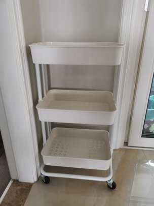这个小推车 对于家里有不会收拾的人来说真的是实在是太方便了 家里有小孩的也可以放好多婴儿的东西 产品质量也很好 没有意味儿 可以随时移动 也可以放一些家里的零碎东西 配送的也挺快 承重能力也可以 自我感觉很好