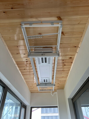 物流很快,包装完美,而且免费上门安装,师傅态度很好!装出来效果棒棒哒,又方便又好用,既好看又实用,不需要举起衣叉,伸手就可以挂衣服了,老人家用得舒心,又安全,值得购买,关键是价格便宜,晒衣服的数量足够一家人的了!