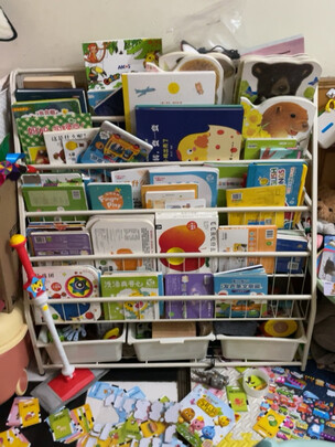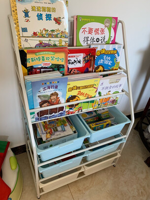这个书架简直完美,5层的正正好,下面还有3个收纳盒,放些积木玩具,拿起来很方便。;(请忽略小朋友自己整理的书籍)