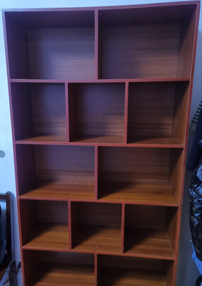 今天刚收到货,马上组装起来,哈哈,花了差不多一个小时时间,挺好,物美价廉,家里另外一个实木的书架,大小差不多,两千多元,性价比超高