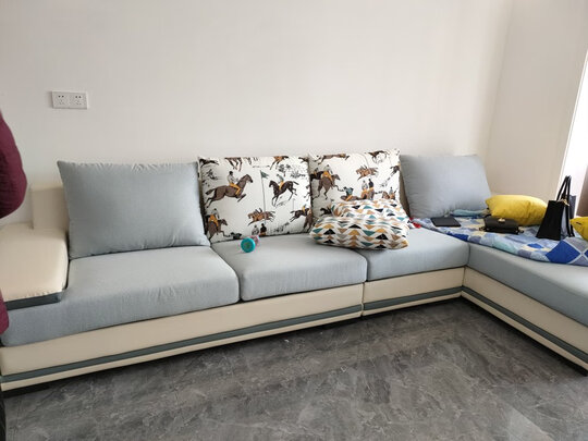 收到包装和物流很用心,配送安装很耐心,服务不错,整体外观款式很喜欢,沙发材质制量很好,简约大气,坐垫很舒适,做工细致,很满意,非常推荐