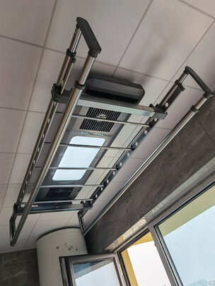经过多次选择决定了这个品牌 ,客服很耐心得解决问题, 外观颜值很高,两个灯板光照充足,承重力效果很好,可以同时晒很多衣服,还带有伸缩杆,伸出来的可以晒被子,收起来小巧轻便,材质很结实,多种控制方式很方便,安装好的照片去新家再给大家晒