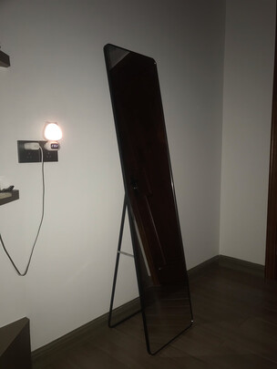 特别好的镜子,家里正好缺一面,邮到家里一点也没有破损,特别好,质量也不错,挺宽的,也挺高,立在那里照照很不错的,也能挂在墙上,非常喜欢,看着也很高档,喜欢的不得了,照人清晰,放在哪里也不占地方,很棒的。