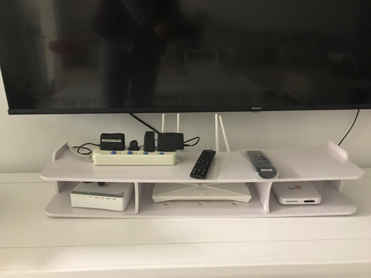 只能说还不错,材质一般情况,毕竟价格在这。不过客观的说,把路由器和猫放在上边看起来电视柜整洁了一些,还算是干净有序吧。尺寸比我想象中的大。
