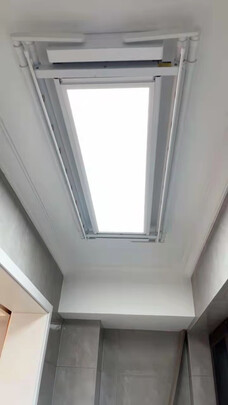 成功安装,隐藏在窗帘盒和过梁之间,由于空间限制只能买单杆的,电动款可选择的不多,最终选了这款,质量很好,遥控器很精致,接灯线就能安装。