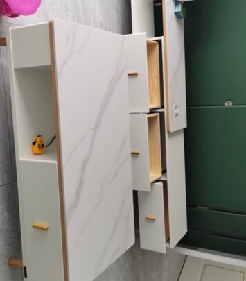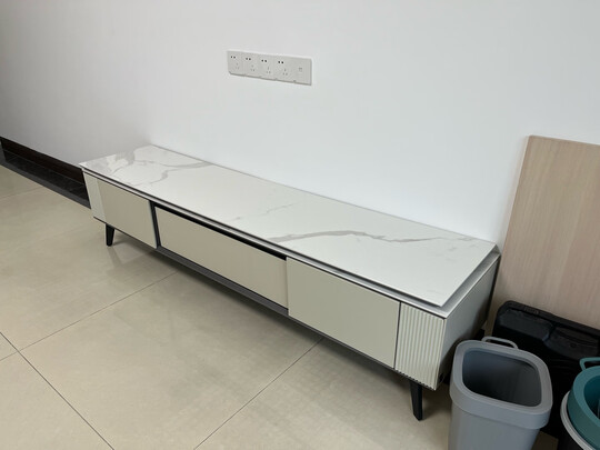 电视柜不错。;第一次送来时,岩板有个角被物流弄坏了,反馈给商家,二话不说,立即安排了补发。;设计很巧妙,安装起来,有点困难。我和同事两个,折腾了1个半小时才装好。当然我们是业余的哈,如果让师傅安装,应该会很快。自己安装,商家返钱,哈哈