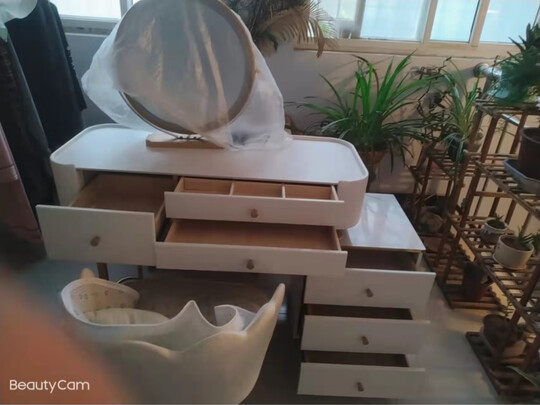 京东物流服务就是好,直接帮我送上楼,这个梳妆台颜色非常漂亮,板材结实,而且还包安装,多个抽屉,可以放很多小物件。超喜欢这种款式,推荐。