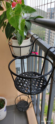 外形外观:OK;占地大小:占地大小:挂在腰部以上, 基本不占地方,不踢脚。;安装体验:非常简单,一挂即可,安全起见,可用绳子绑住。;产品质量:中等用料,厚重说不上,但放置十几二十斤的花盆问题也不大,喷有一层黑漆。