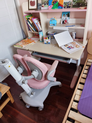 发货快送货快一直是京东的优质特点,网上看颜色有点重,看到实物很惊喜,孩子很喜欢,款式和颜色终于不用和别的品牌学习桌相似程度那么高了,书桌刚好和孩子房间的吊灯搭配成套,堪称完美,最后说一下安装师傅,主动打电话约时间,安装细心,服务周到,一次完美购物?