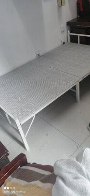 挑选东西,付款到收货。一共用了一天的时间。这个效率真的让人满意。打开这个牌子的折叠床一看。也还是比较满意的。这个床的重量很轻。用料做工还算可以。躺着试试很舒服。很满意。