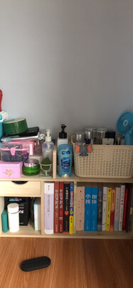 这个书架真的超实用,看起来不大,但是收纳真的是好棒!我是放了各种东西啊!整理完书桌真的超级立正!大爱了!质量也是超级好,木质的也没有很多毛刺,安装也是很省力,我一个女生,自己完成毫无压力!真的是推荐,强力推荐的一款!